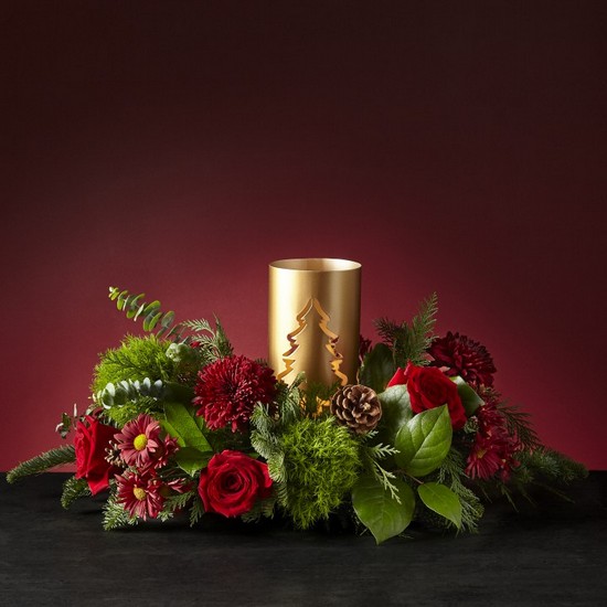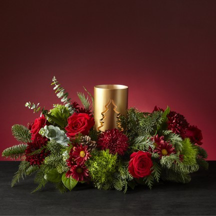 Rekindle your appreciation for the beauty of a winter landscape with our Through the Woods centerpiece. While much of the natural world is dormant, liven your space with this rustic centerpiece's red florals and bright eucalyptus greenery.
