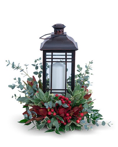 A lantern is a great keepsake for the home but is also a comforting symbol of lighting the path ahead. Light Through the Fog is a customer and shop favorite, as a sympathy gift, or just because. A small metal lantern surrounded by premium foliage creates a peaceful atmosphere and serves as a beautiful keepsake for years to come. This design will look perfect in the middle of a dining or coffee table and will be a treasure to the recipient.