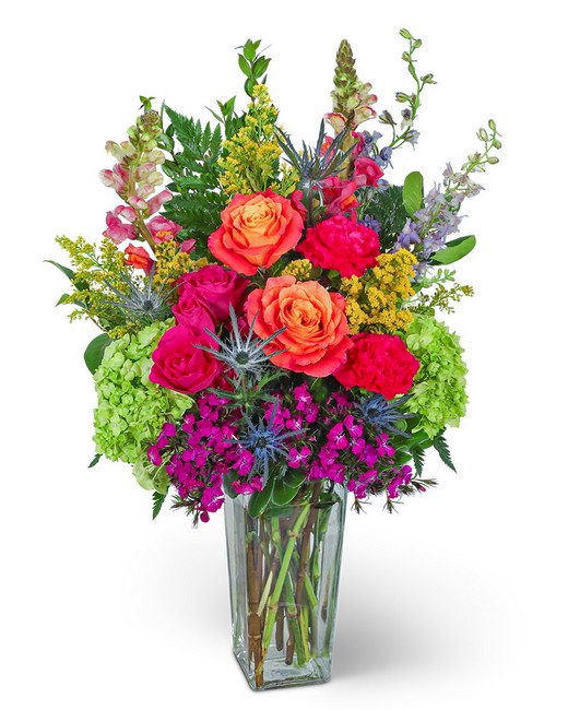 Step into a world of blooming beauty with our Garden Party flower design. This exquisite arrangement showcases a delightful medley of roses, hydrangeas, carnations, snapdragons, larkspur, and other premium blooms and foliage. Order now and bring the beauty and spirit of a garden party into your home or make it a memorable gift for someone special.